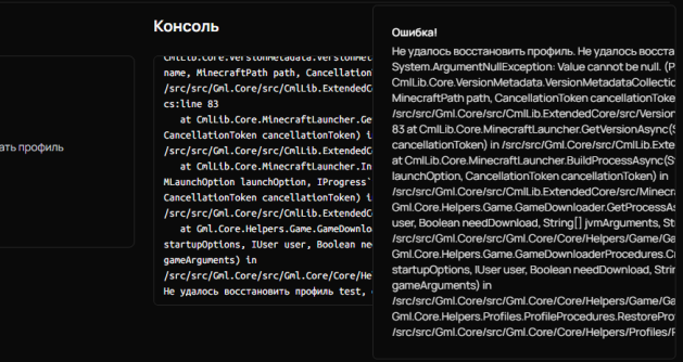 If errors of this kind occur, they may be more serious. Gml Backend is designed to self-repair, but some administrator actions may break profile integrity. In such cases, the only solution is to recreate the game profile.